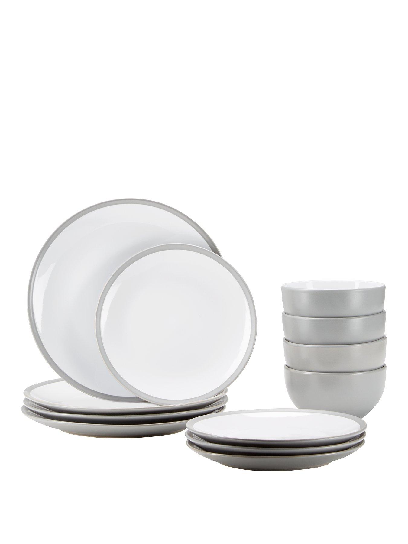 Set includes 4 dinner plates, 4 salad plates, 4 soup/cereal bowls and 4 small. Denby intro taupe 12 piece tableware set. Denby azure haze 4 piece coupe dinner plate set. From denby's collection of place settings. Set includes 4 dinner plates, 4 salad plates and 4 soup/cereal bowls.